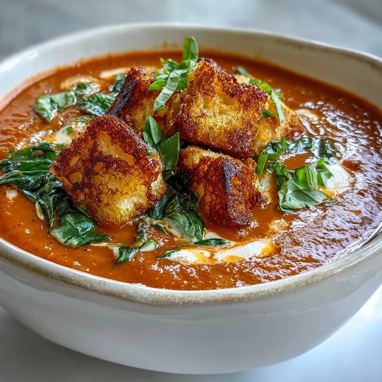 Pin It There's something almost magical about the smell of tomatoes roasting in the oven—it fills your kitchen with this concentrated, almost jammy richness that makes you wonder why you don't do it more often. I discovered this soup by accident one autumn afternoon when I had a surplus of tomatoes and decided to roast them instead of the usual quick simmer. The result was so velvety and deeply flavored that I've been making it ever since, especially on those evenings when the weather turns crisp and you need something that feels like a warm hug in a bowl.