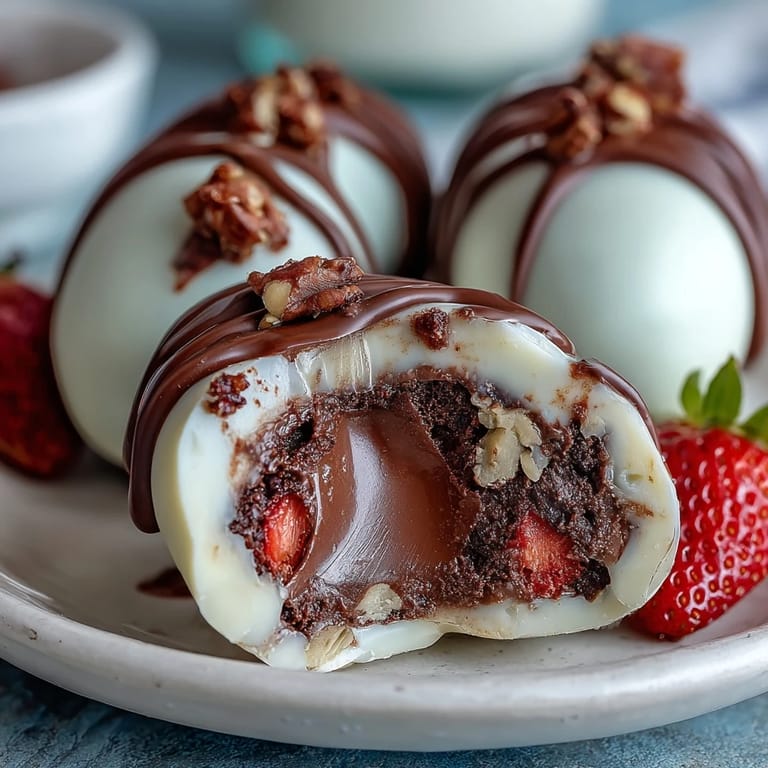 For a nut-free version, omit the hazelnuts and replace the hazelnut spread with sunflower seed butter or tahini for a similar creamy texture. You can experiment with different chocolate shells—try dark chocolate for a more sophisticated flavor or ruby chocolate for a naturally pink hue without food coloring. Add a pinch of sea salt to the filling for a sweet-salty contrast, or mix in dried strawberry pieces for extra fruit flavor. For a more indulgent variation, add a thin layer of caramel or date paste between the shell and filling.