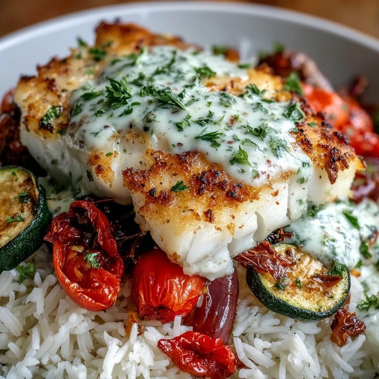 - Divide fluffy rice among four bowls, top with roasted vegetables and a seared fish fillet, then drizzle generously with lemon sauce. A fresh parsley leaf on top makes it feel intentional, like you meant for this to taste this good.