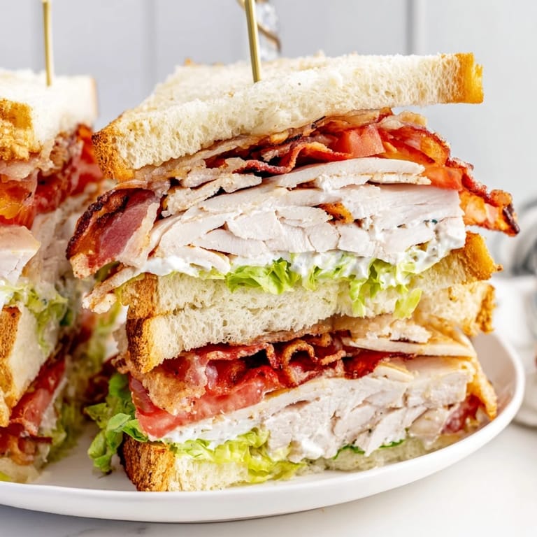 Pin It Sunday afternbspin our house meant something specific: the sound of bacon sizzling and that particular aroma that made everyone drift toward the kitchen. My dad had this ritual where he would stand at the stove, flipping bacon with deliberate patience while explaining that the crisping process wasnapost something to rush. He would napost make these towering sandwiches often maybe once a month but when he did, it felt like an event. The turkey club wasnapost just lunch. It was architecture.